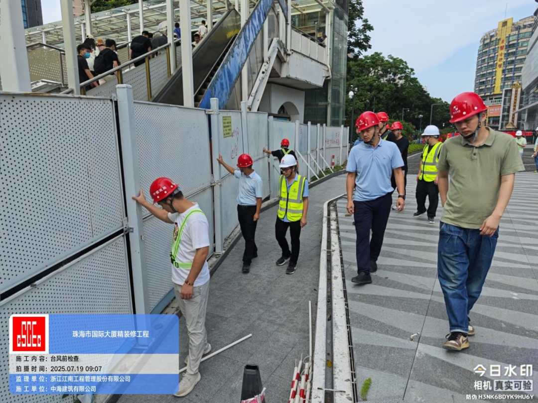 為切實做好臺風“韋帕”防御工作,及時排查并消除項目各類安全隱患,7月19日,珠光國際大廈組織開展安全檢查工作,對項目施工現場的臨時用電設施、施工電梯等大型機械設備及工地材料堆放規范性等情況進行了全面的安全隱患排查,確保項目排水系統暢通無阻、設施設備穩固可靠,確保在臺風來臨前將所有安全隱患消除到位。