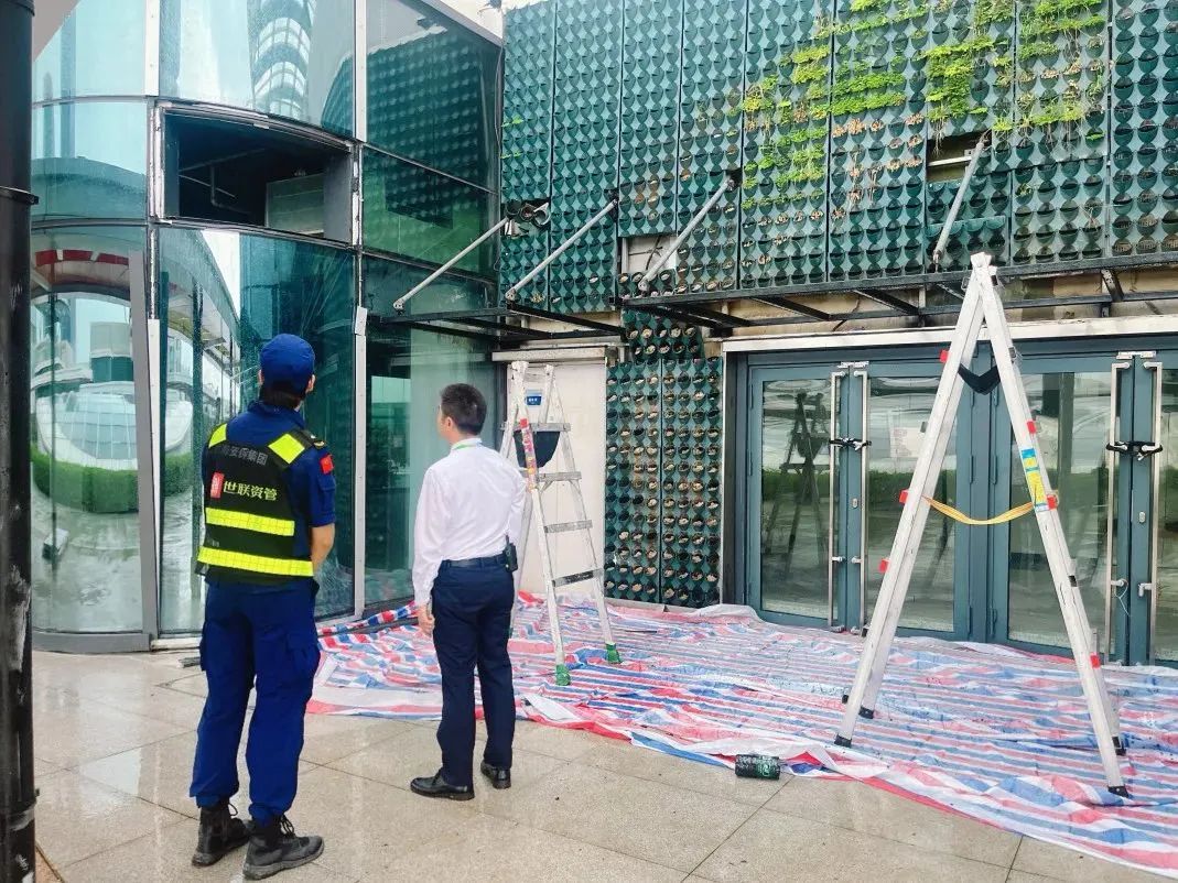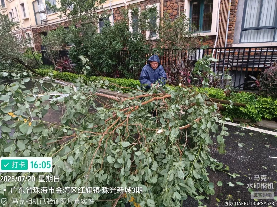 珠光物業公司迅速行動,全力以赴抓好臺風防御各項工作,安排人員加強值班值守,全面開展隱患排查、加固設施、防汛排水等工作,同時通過微信等線上渠道保持與業主的緊密聯系,及時發布臺風信息及安全防范指南。臺風逐漸遠離后,物業工作人員加緊進行搶險修復工作,堅決守牢業主生命安全底線。